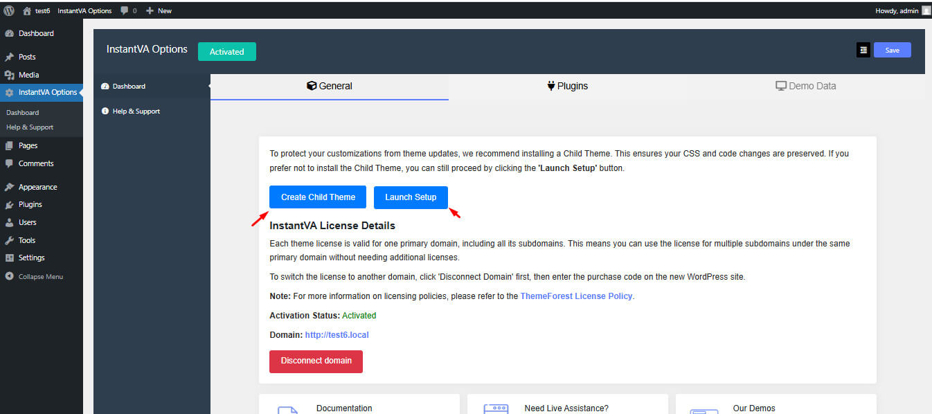 - When the installation completes, click Activate. You will be redirected to Themes page with InstantVA activated.