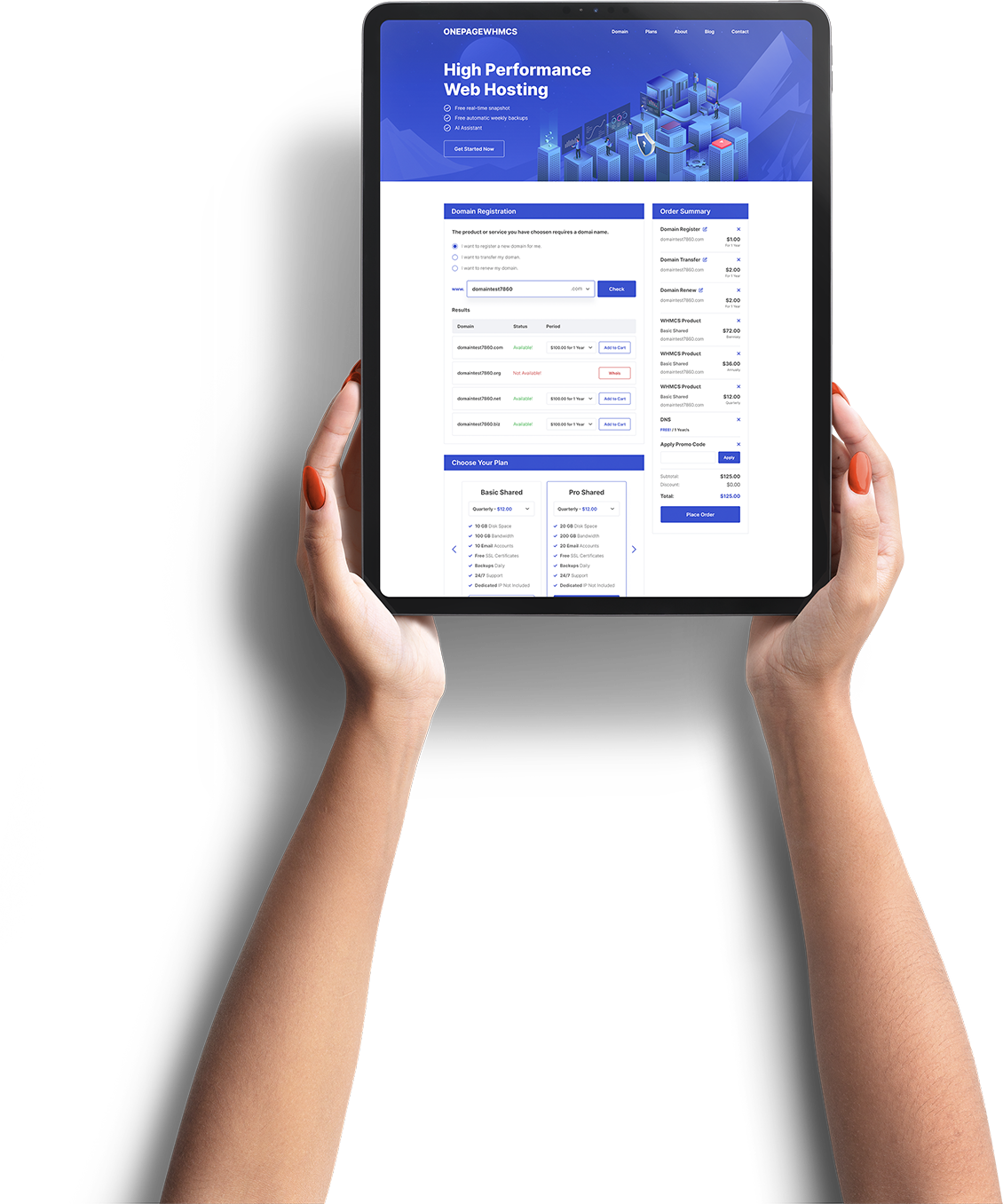 Experience the ultimate checkout simplicity with our WHMCS OnePage Checkout solution that combines cart review, pricing plans, domain selection, billing details, added services, and seamless payment integration into one user-friendly interface. Dive into our demos to discover the efficiency of having an entire checkout process in one accessible page. Need customization or have questions? Drop us a comment!