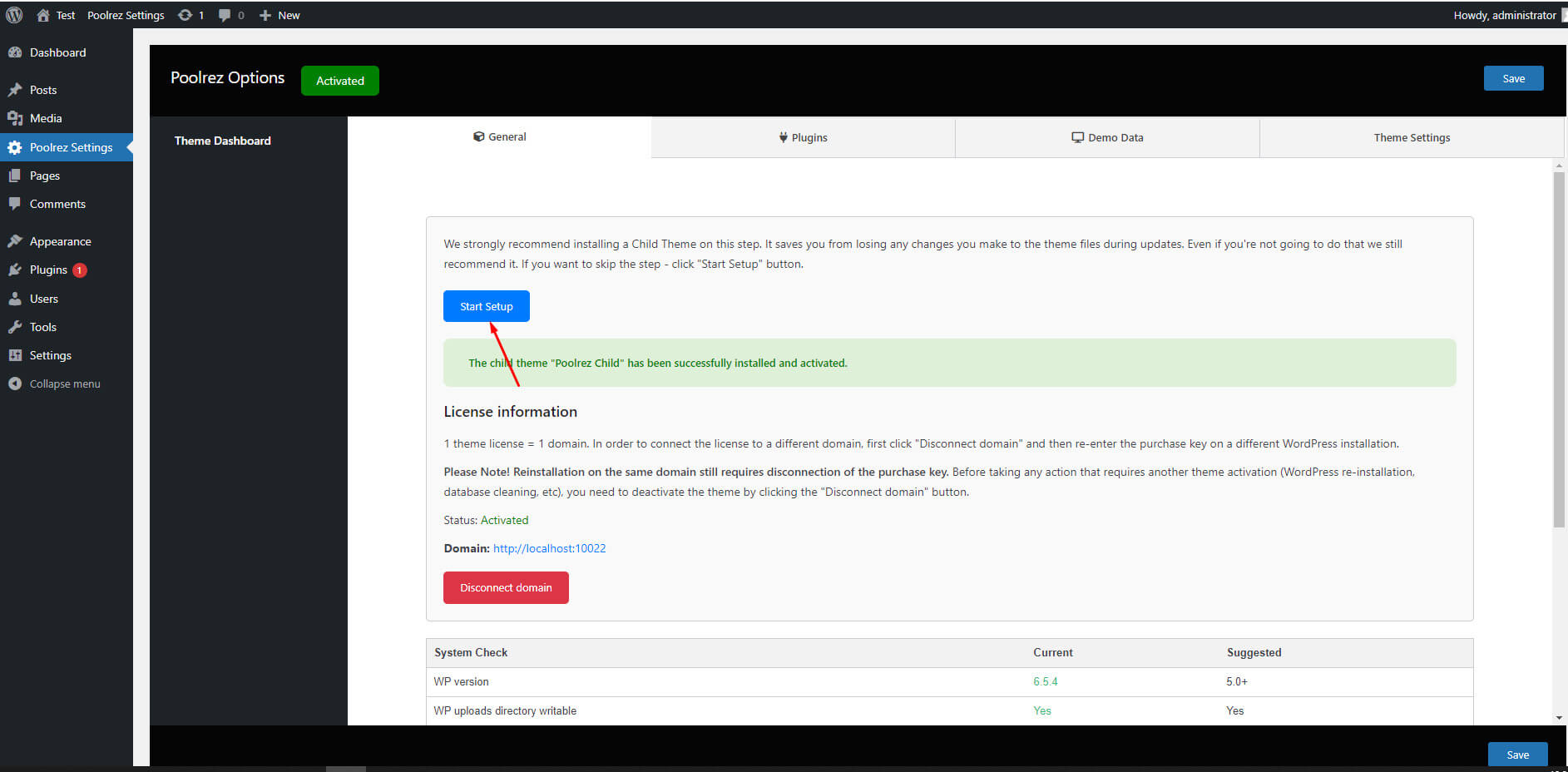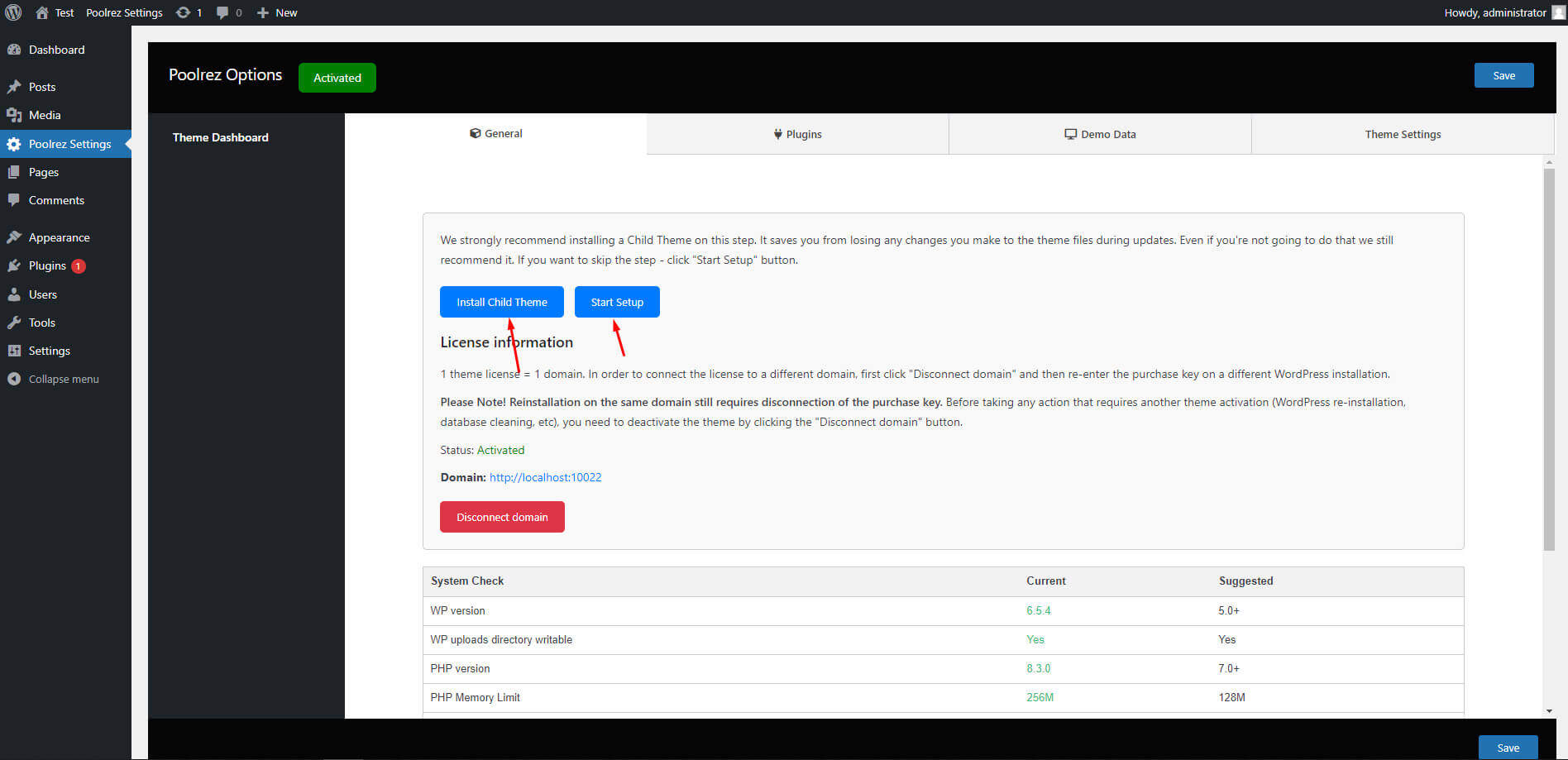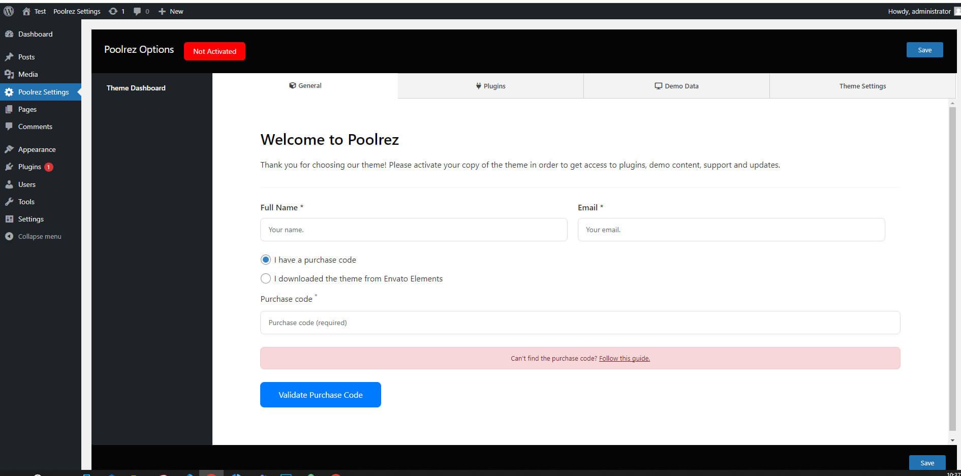- When the installation completes, click Activate. You will be redirected to Themes page with Poolrez activated.